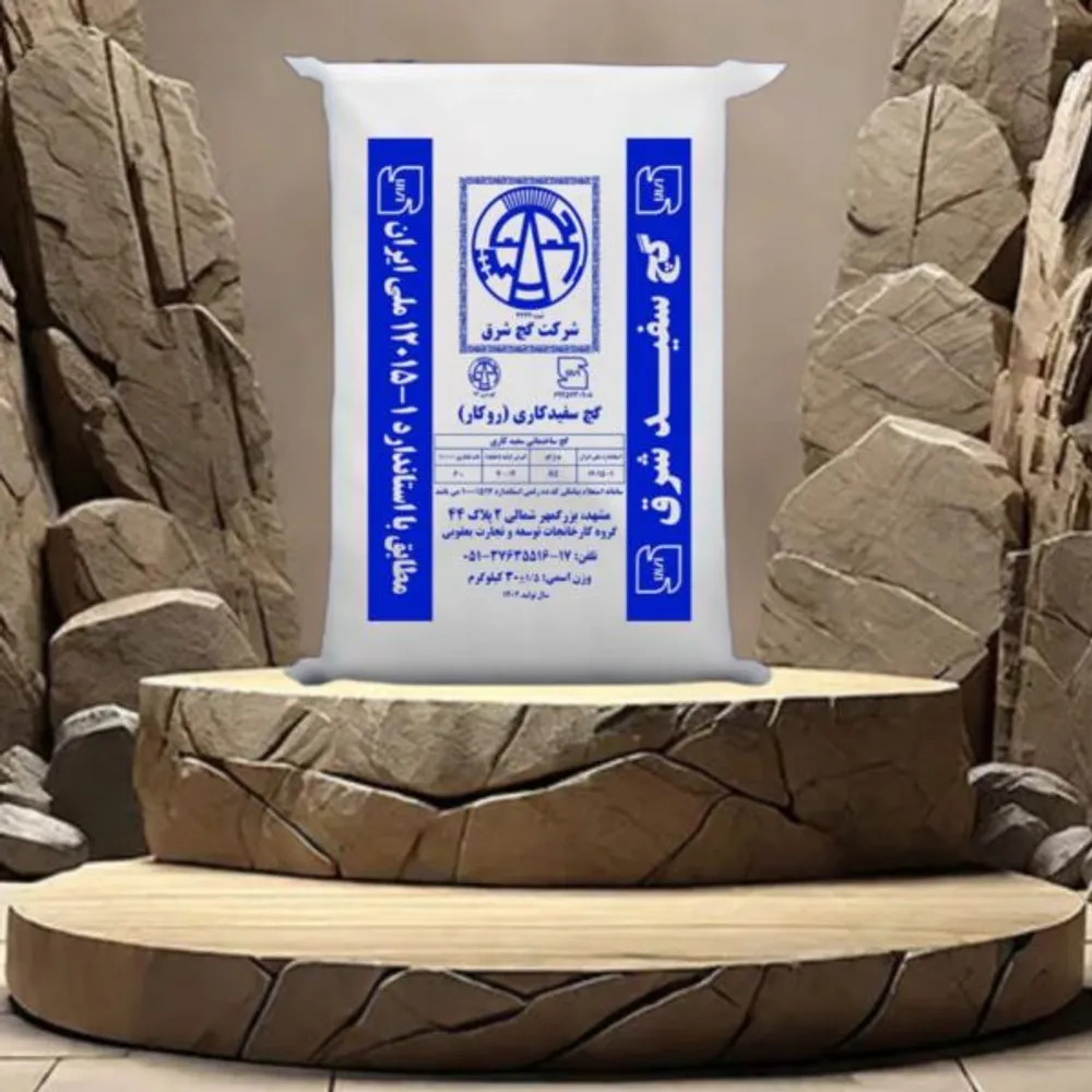 گچ سفید شرق رنگ سفید دارد که مناسب برای گچکاری و تزئینات داخلی ساختمان است و دارای کیفیت بالا, زمان گیرش مناسب و قدرت چسبندگی خوبی است که در کاربردهای مختلف مانند گچکاری دیوارها و سقفها و همچنین در نصب سقفهای کاذب یا گچبریهای تزئینی استفاده میشود. در وزن های ۳۰ و ۴۰کیلویی
